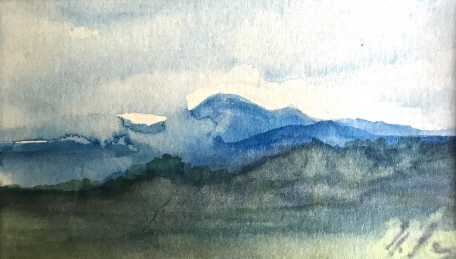 Alfred Vogel (15.2.1908 Freiburg - 4.10.1944 Düsseldorf) - Sonnenaufgang hinter den Alpen auf dem Belchengipfel (Aquarell 1927)